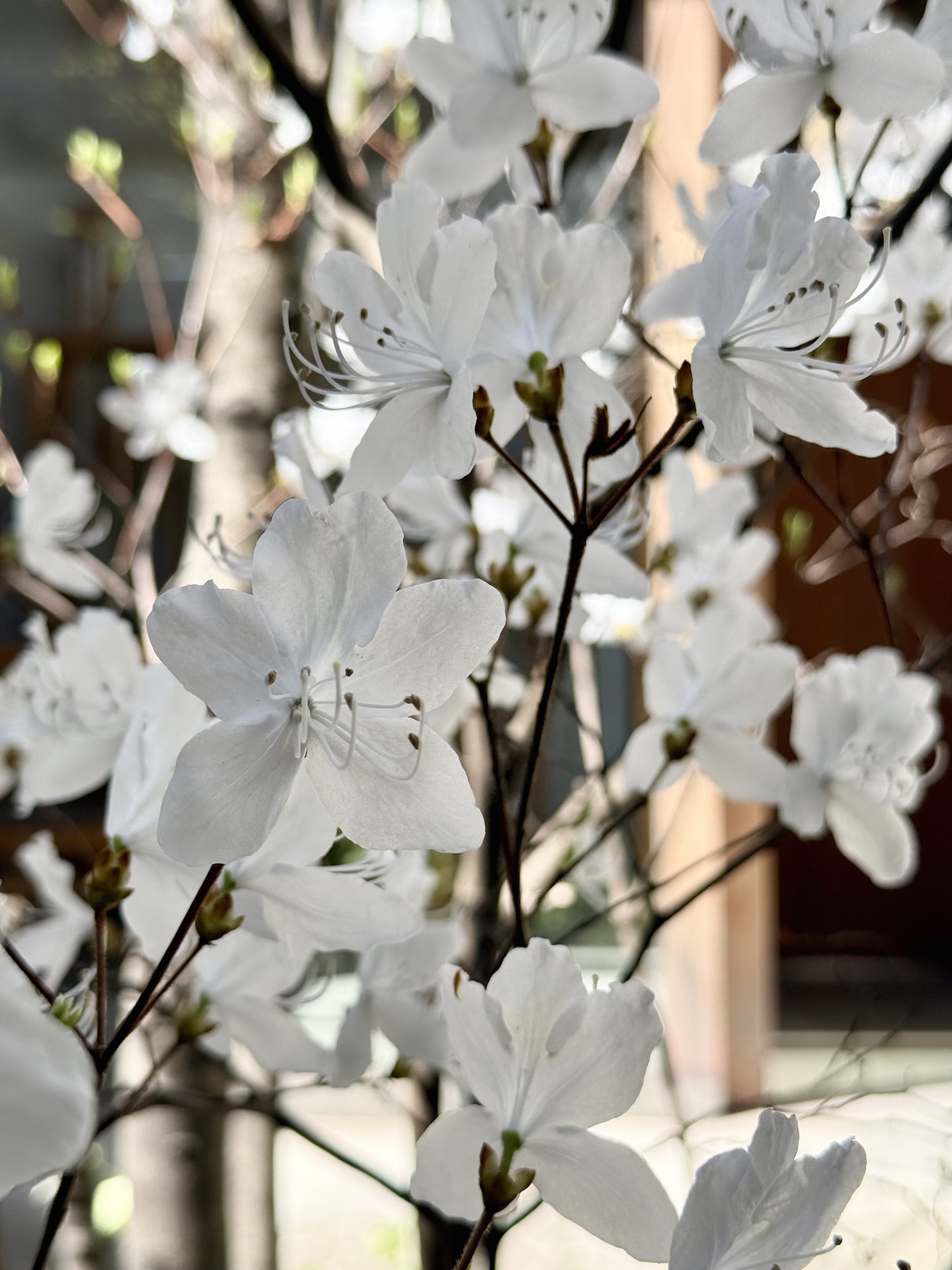 ミツバツツジが白く輝く うららかな午後です