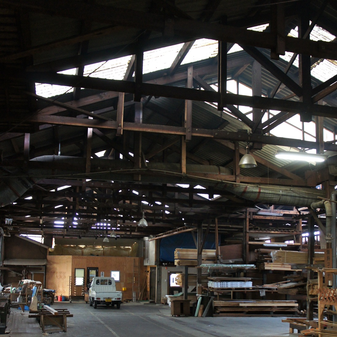 プレーナー掛けをするスタッフの方を包む大屋根!