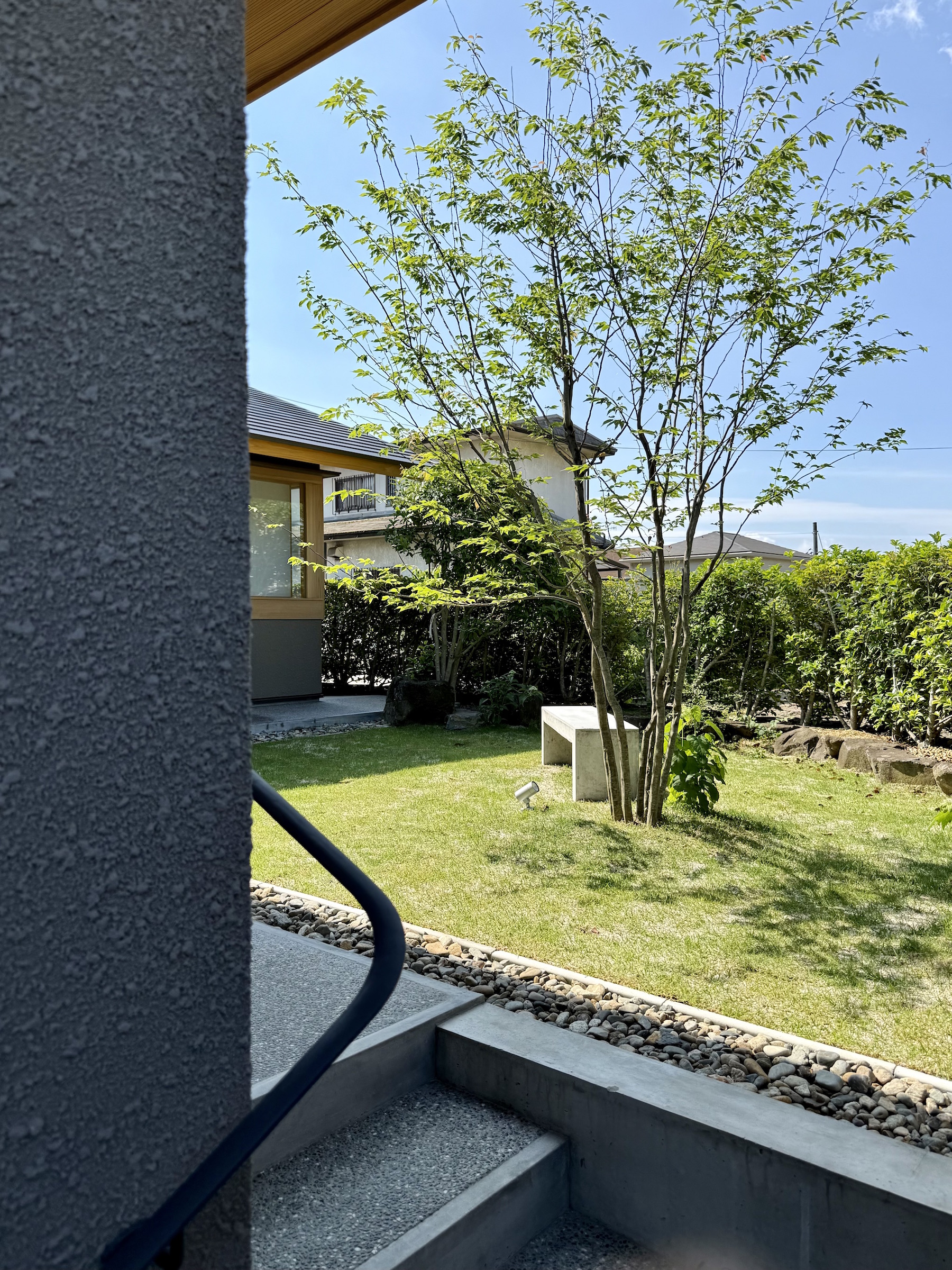 完成したばかりの庭と 快晴の空が出迎えてくれ・・