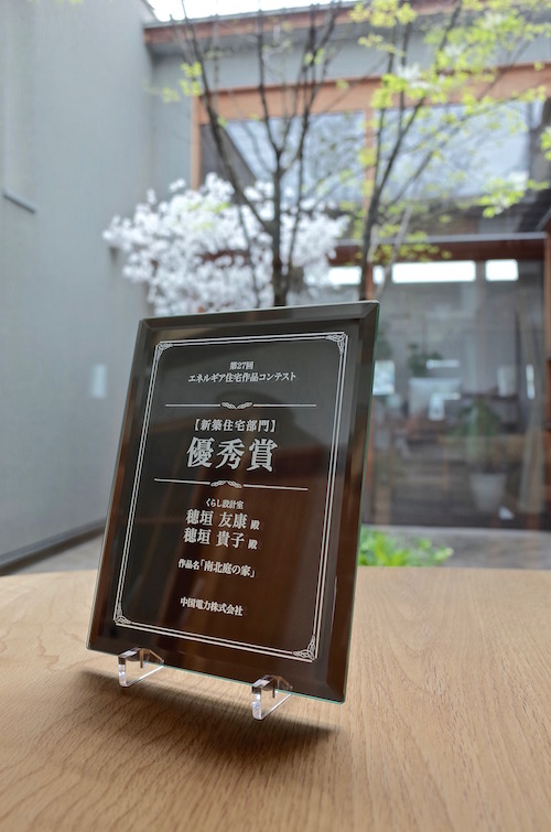 「南北庭の家」が新築住宅部門の優秀賞を頂きました。