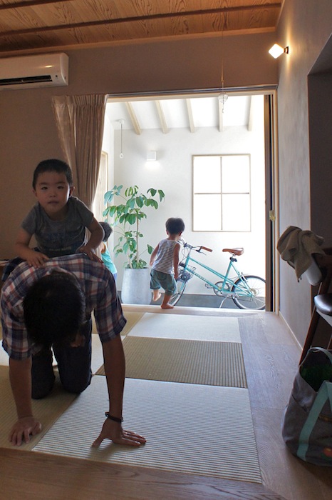 男の子たちにかかれば、畳はレスリングマットへと早変わり。