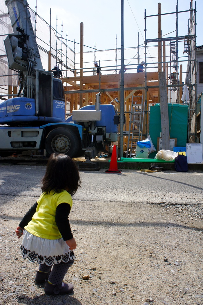 ムスメさんもどんな家が出来上がるのか興味津々です!