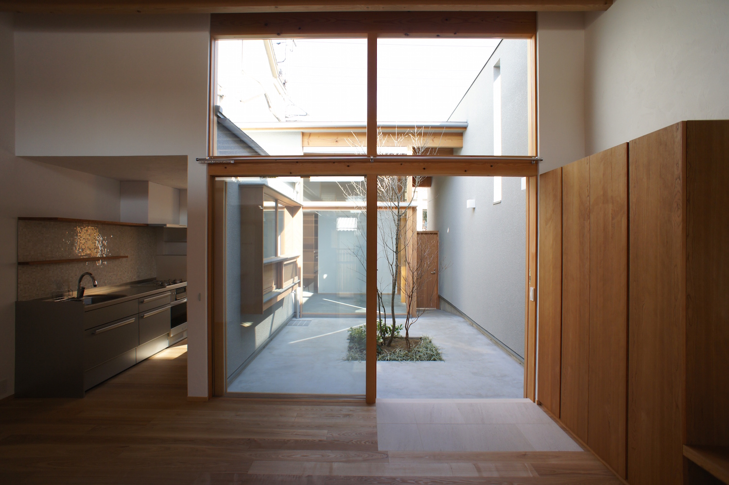 商店街に面した敷地ですが、アプローチを兼ねた中庭に