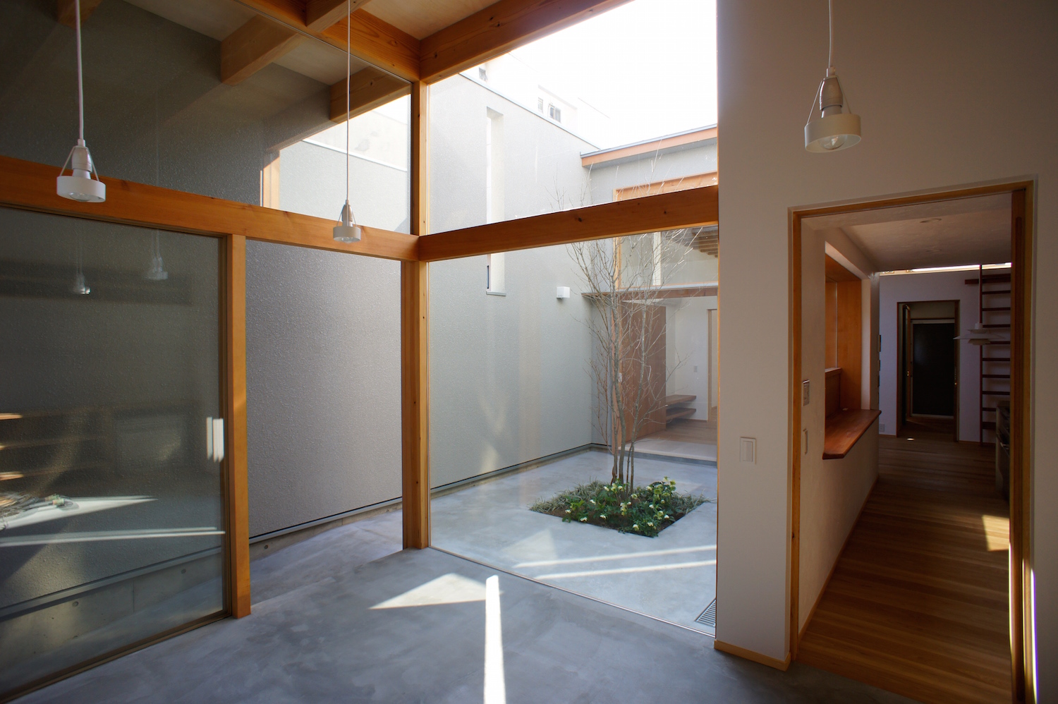 中庭を囲むように配置した諸室は、