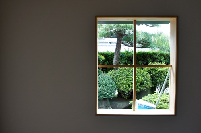 くらし設計室のダイニング 兼 打ち合せ室には、庭に面して小さな窓があります。