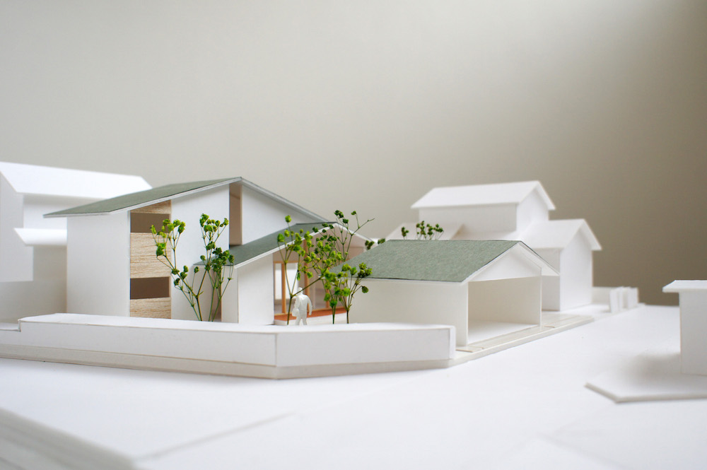 「三原の家」は切妻屋根が二段に連なる単純な構成のなかに