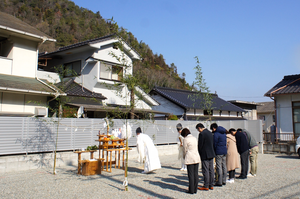 春が訪れたような気持ちのよい空の下、地鎮祭が執り行われました。