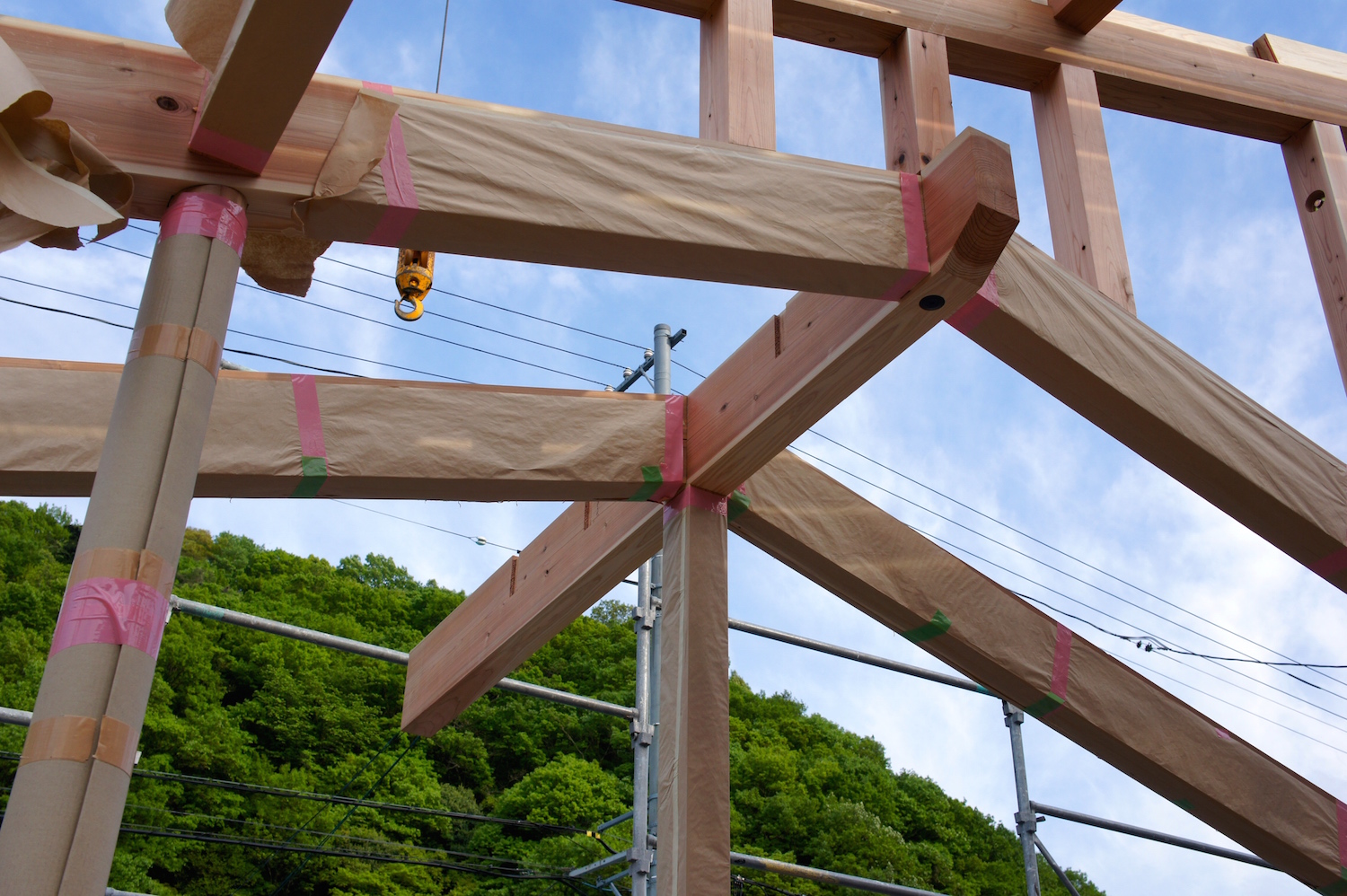 吉野杉の美しい架構とこの場所の自然を感じられる気持ちの良い住まいになりそうです。