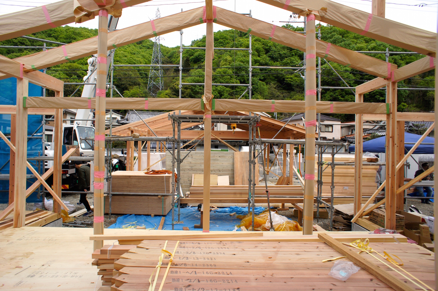 木材の適材適所を見極めて、どの材料をどの場所・どの向きに配置していくかを棟梁と一緒に決めていきます。