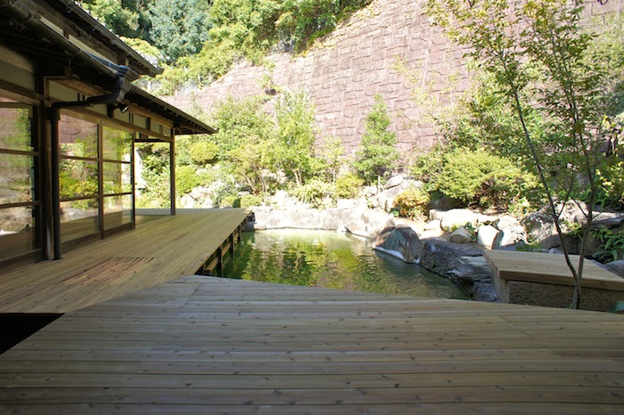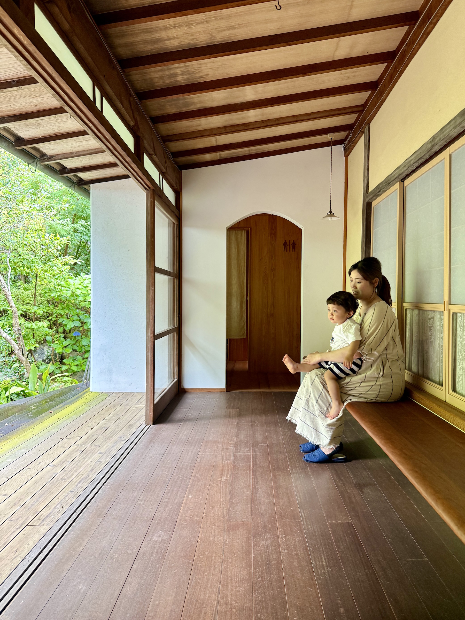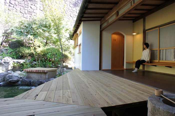 お庭を望むベンチに腰掛け、悠々と泳ぐ鯉たちを穏やかな気持ちで眺める…