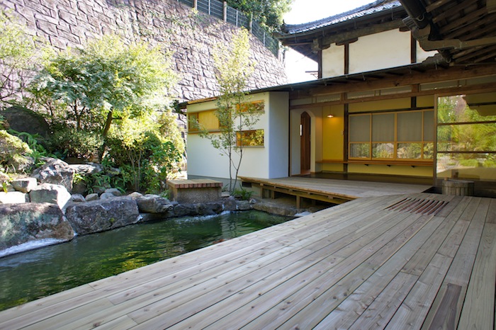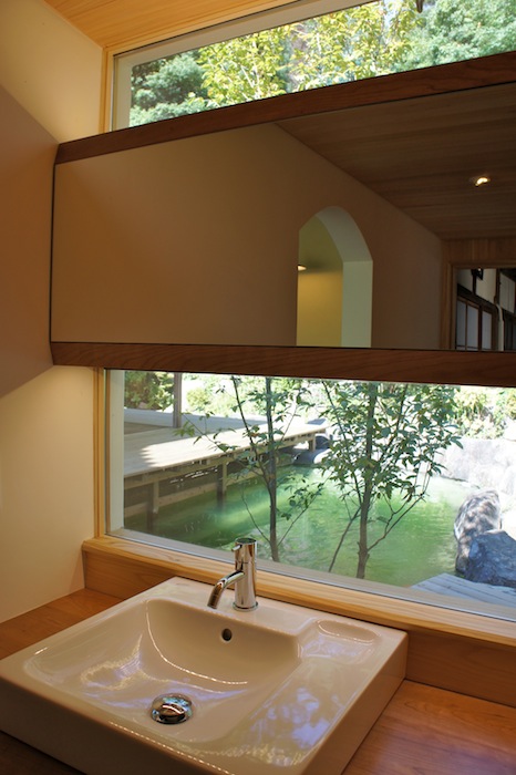 手洗所と接する場所には中庭と、綺麗な鯉が泳ぐ池があり