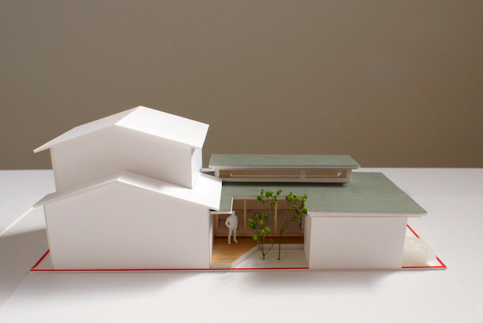 既存建物とL型の離れによる小さな中庭をもつ住まい。