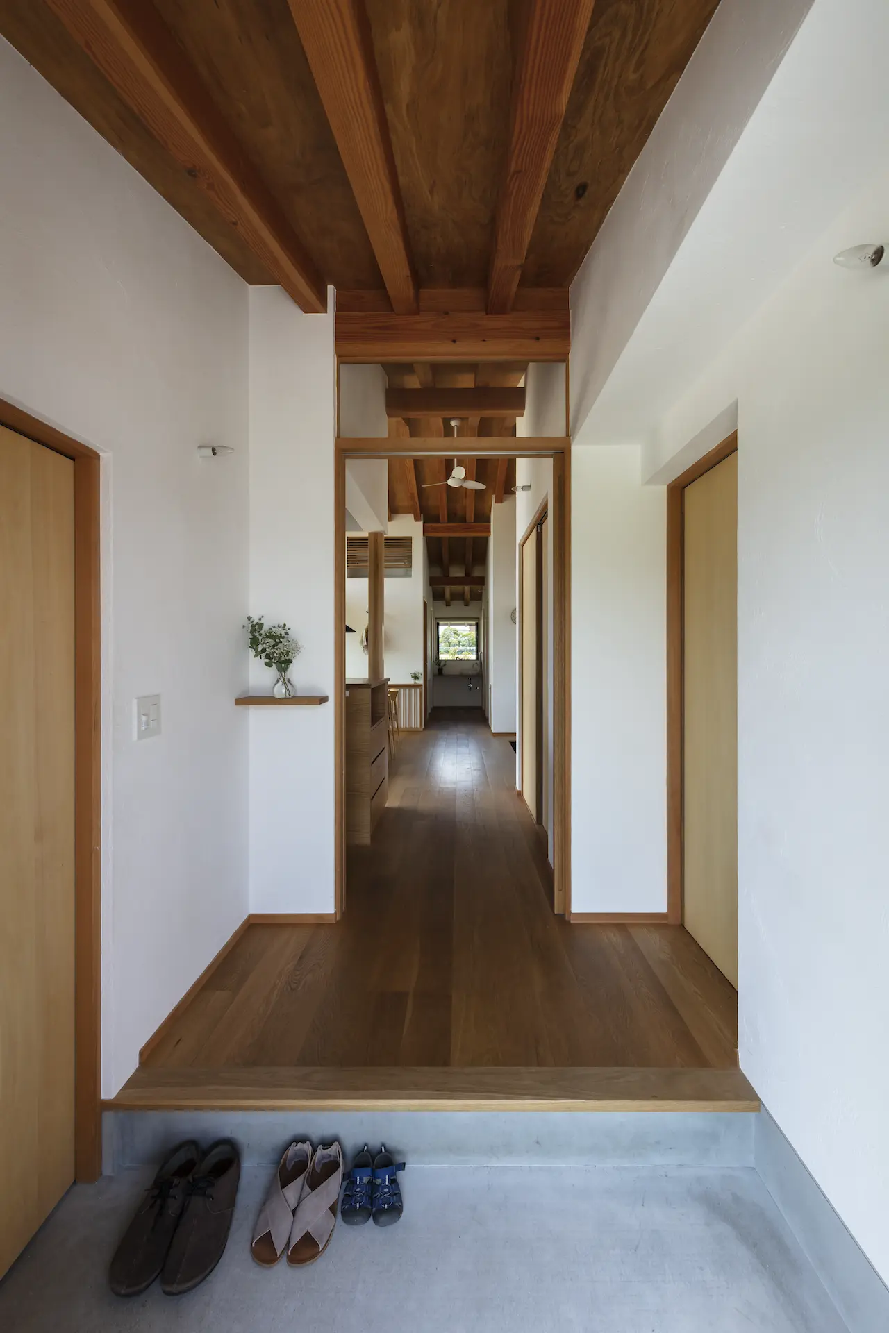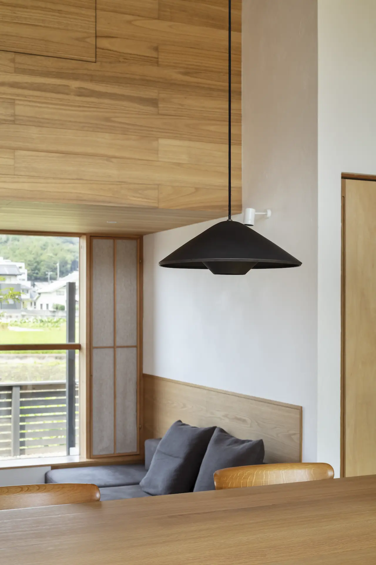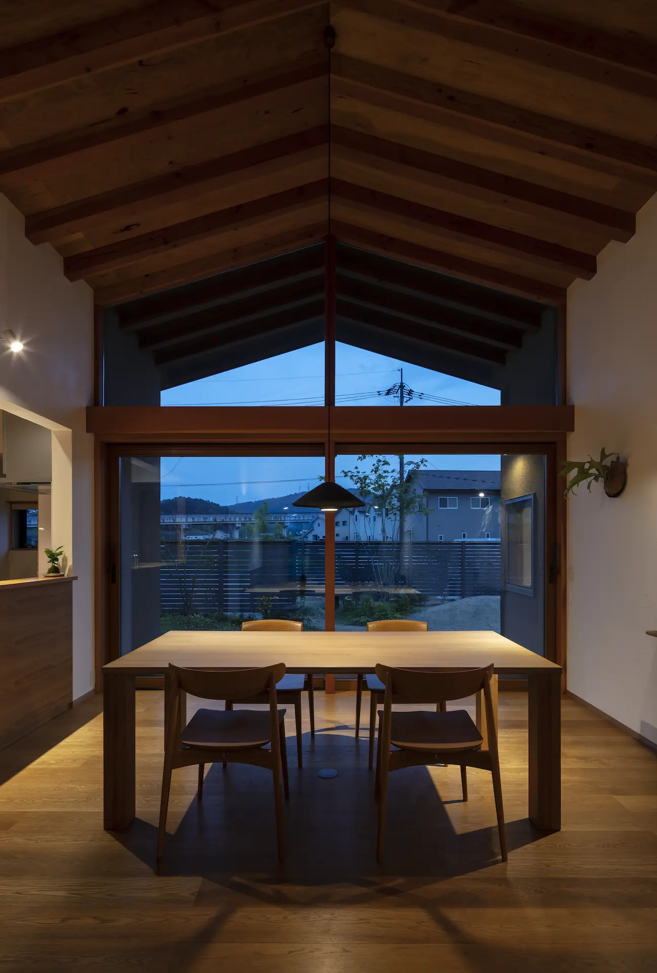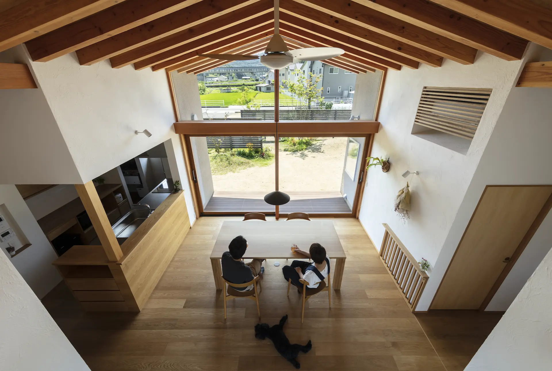 福山市の西部、周囲を田畑に包まれるような平屋建ての住まいです。敷地内の菜園で野菜を育て、外遊びに親しむご家族の暮らしは大地や空、木々や野の草花‥揺るぎない自然がすぐ傍に在りだからこそ屋根の下に集う、生命の確かさを実感します。床を堀り込んだ窓辺のソファに身を沈めると、大地に寝ころぶような安らぎを覚える‥暮らしから深い充足を得られることが、作り手のささやかな願いです。