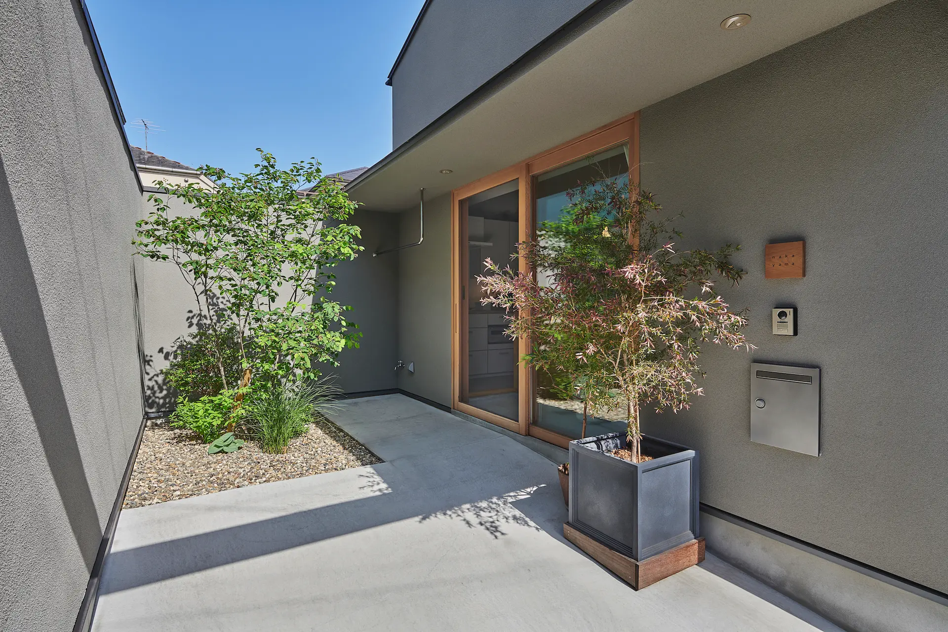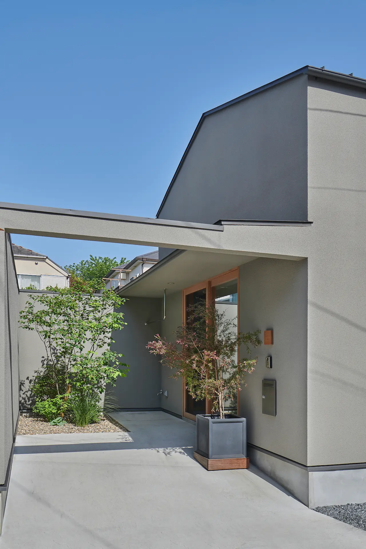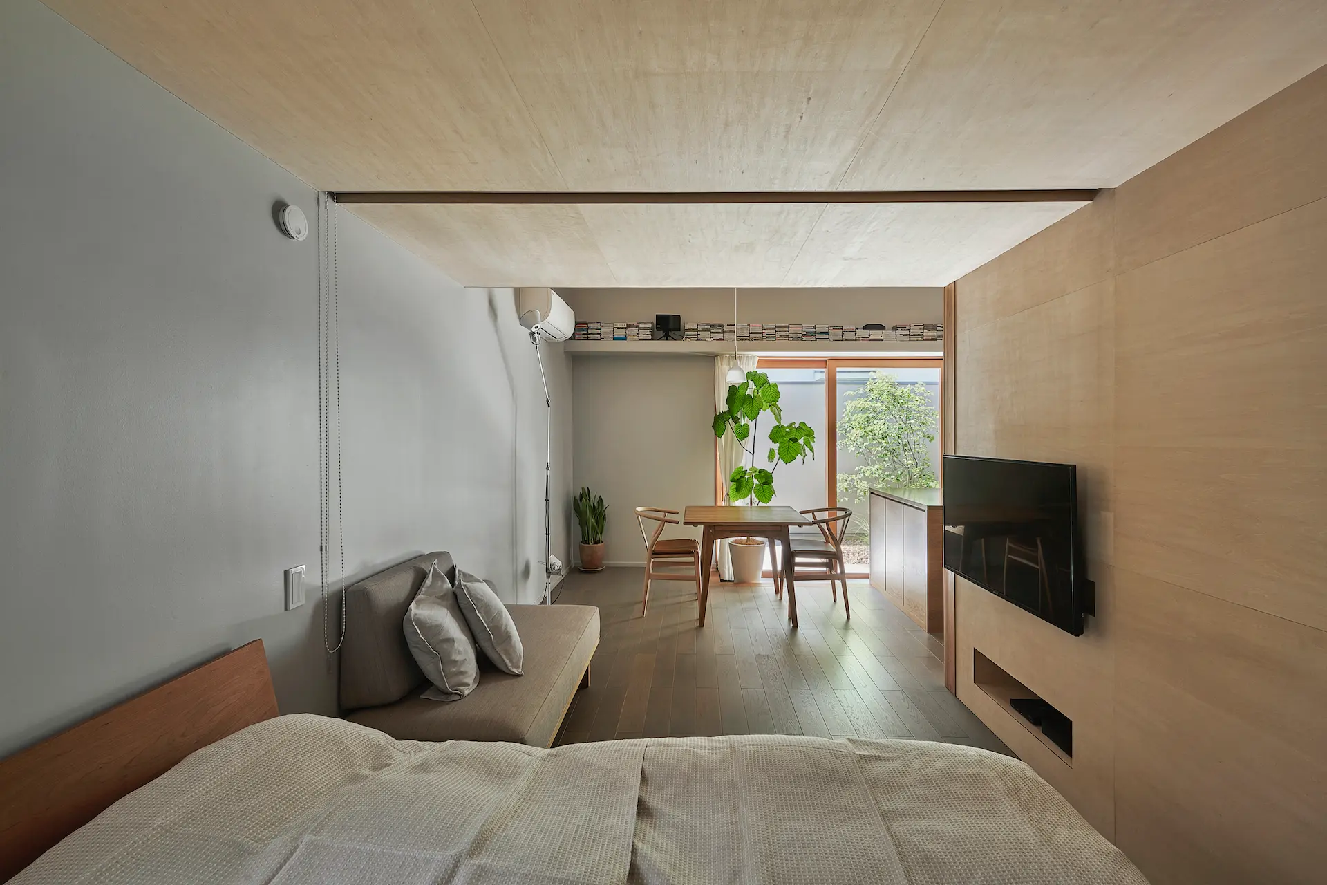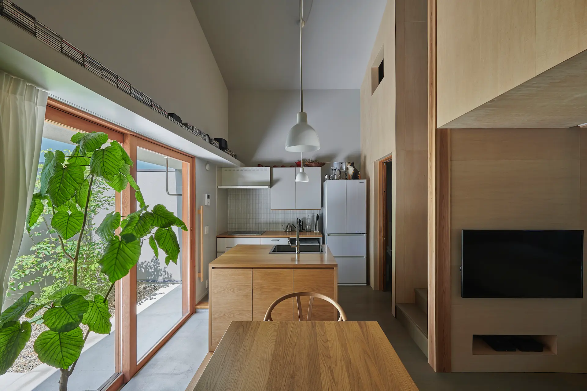 東京・吉祥寺 住宅が建ち並ぶ市街地にある木造2階建ての住宅です。 窓辺のキッチンとダイニングをくつろぎの中心として、奥へは落ち着ける寝室を、そしてご夫婦のお気に入りの詰まった上階。小さな中庭に青葉が揺れて、切妻屋根の下に音楽が満ちる・・人生をかけてふたりで集めてきたかけがえのないものを仕舞う宝箱のような、16坪の小さくて愛おしい住宅です。