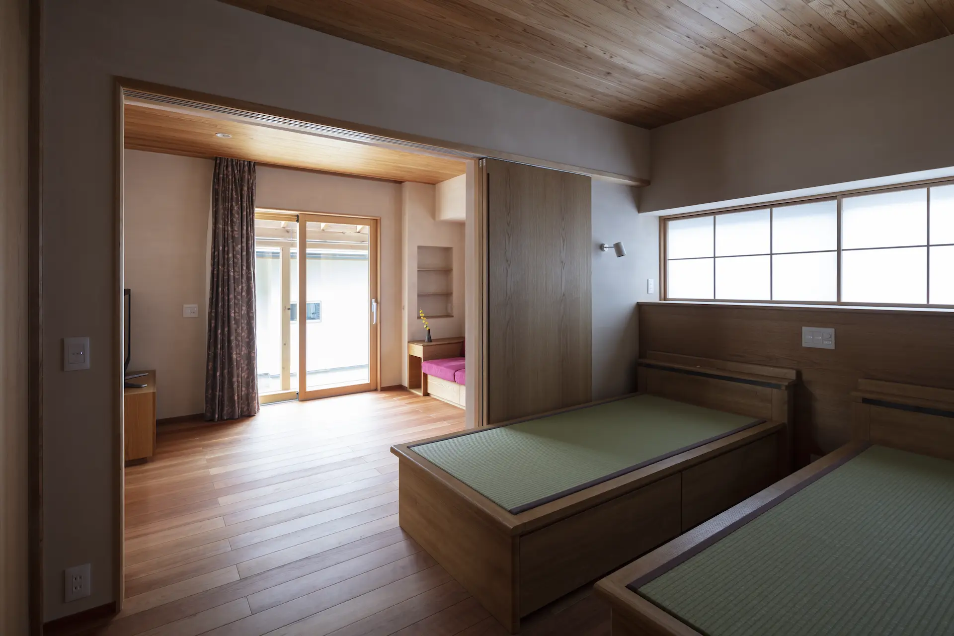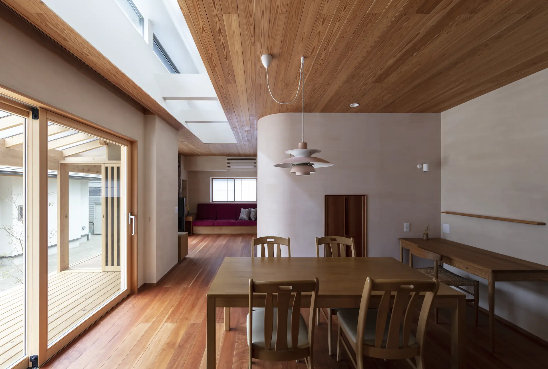 二世帯をつなぐ仲立ちとしての縁側のような役割を担っています。